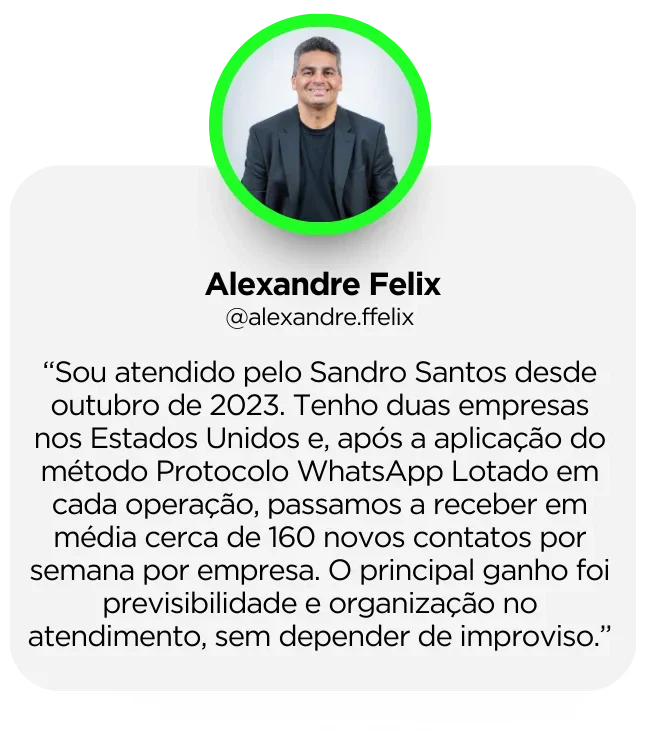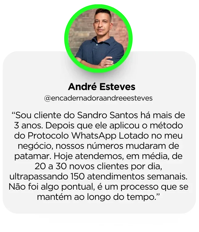 Sandro Santos, estrategista com dezenas de clientes no Brasil e Estados. CEO da A Conexão Digital e criador do Protocolo WhatsApp Lotado, já ajudou dezenas de empreendedores a transformarem seus perfis em verdadeiras máquinas de atração e fechamento de clientes.